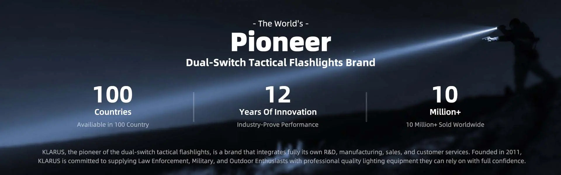 KLARUS, the pioneer of the dual-switch tactical flashlights, is a brand that integrates fully its own R&D, manufacturing, sales and customer services.